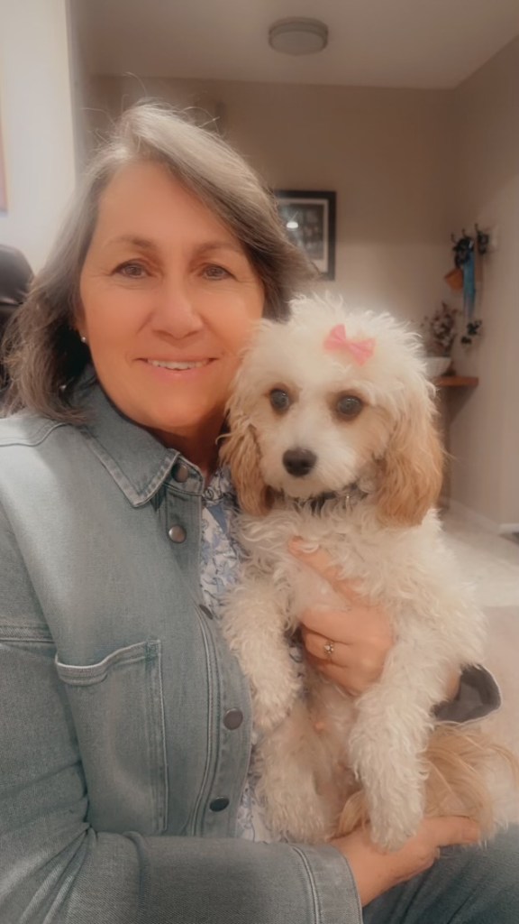 Half Saint Charles Cavalier and Poodle. Coming in at 10 pounds, Penny is such a good family dog! She loves kids, cuddles, and playing in water.